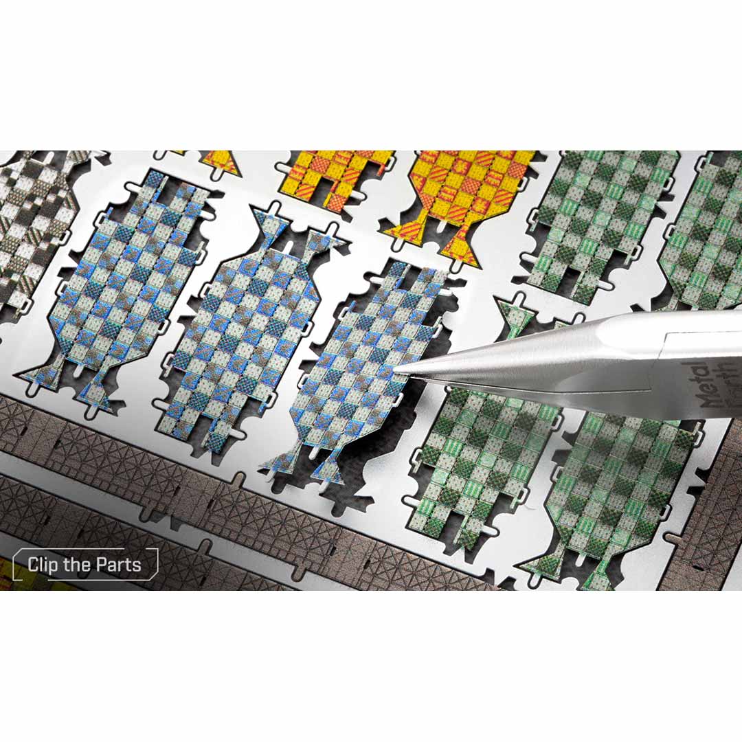 Metal Earth – vom Stahlblech zum verblüffenden 3D-Metall-Bausatz – Einfach lasergeschnittene Bauteile aus der Metallkarte (11 x 11 cm) herausdrücken und ganz ohne Klebstoff zusammensetzen.