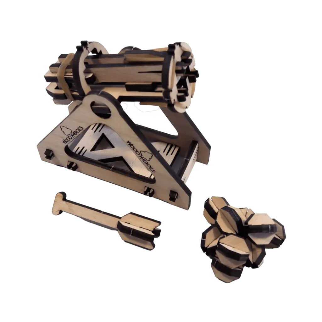 Bei Belagerungen nützlich UND effektiv – die Bombarde II Click & Play. Durch das einfache Click & Play System lässt sich der Bausatz aus 4mm dickem Buchensperrholz komplett ohne Leim montieren und garantiert dabei volle Stabilität.