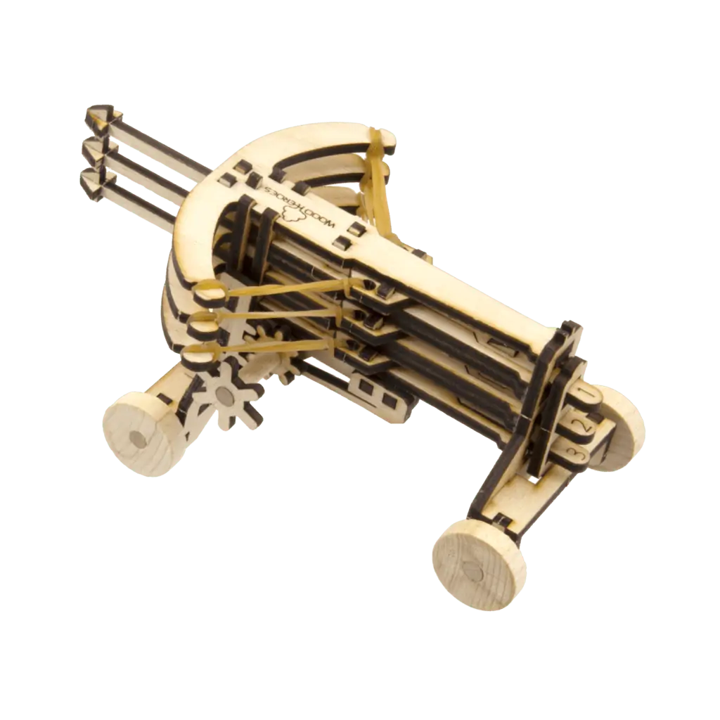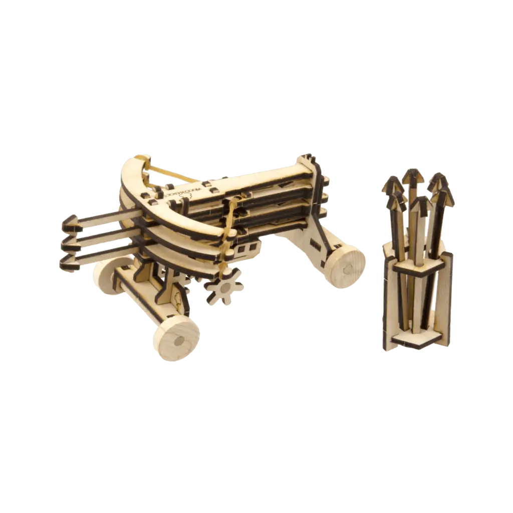 Veranstalte Geschicklichkeitsspiele mit Freunden: Durch ihren höhenverstellbaren Abschusswinkel kannst du Dreifach Balliste sie ganz präzise auf das gewünschte Ziel ausgerichtet werden. Mit den voll funktionstüchtigen Rädern kannst du sie von deinen Rittern so nahe wie nötig an die belagerte Burg schieben lassen.