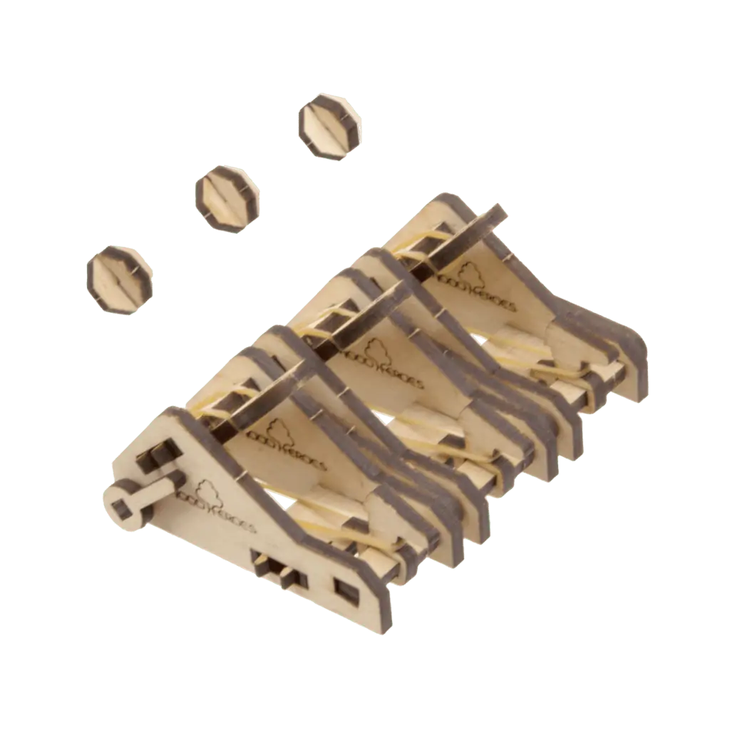 Das Serienkatapult besteht aus 3 verbundenen Katapulten. Es werden 3 Stück Munition mitgeliefert.